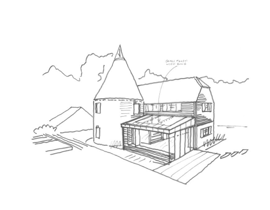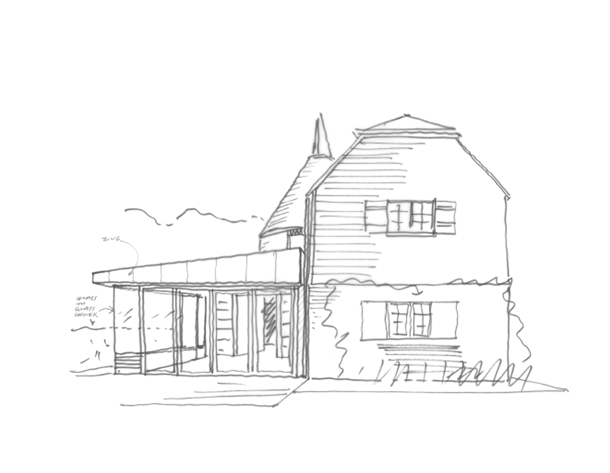The new proposal is for a single-story extension to the rear of the property, linking the roundel that was recently rebuilt with the former barn that appears to have been built in the later 19th century.
